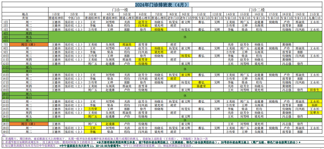• 2024年門診排班表(9月)